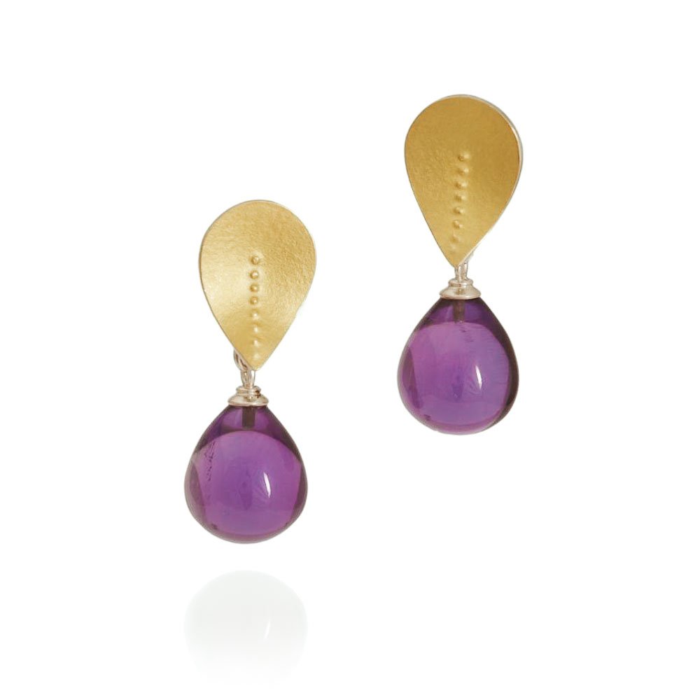 Da Gold ein sehr kostbares Material ist habe ich die Vorderseite der Ohrhänger mit Amethyst aus Gold gefertigt, die Rückseite aber aus Silber. Dadurch bleibt der Preis erschwinglich, und die Ohrhänger strahlen durch das hochkarätigem Gold Wertigkeit aus.